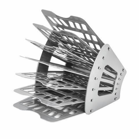Лоток для бумаг веерный BRAUBERG "Basic" 7-ми секционный, 6 отделений, сетчатый, серый, 237020
