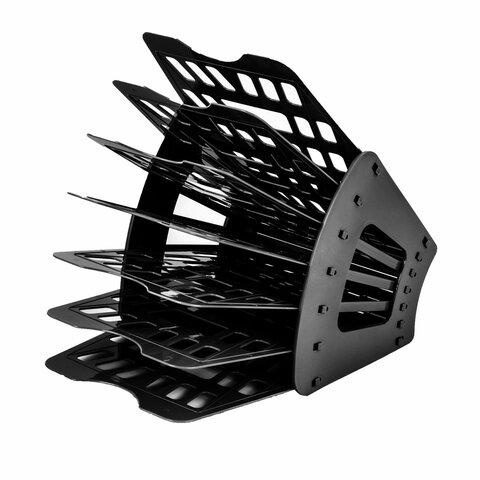 Лоток для бумаг веерный BRAUBERG "Basic" 7-ми секционный, 6 отделений, сетчатый, черный, 237019