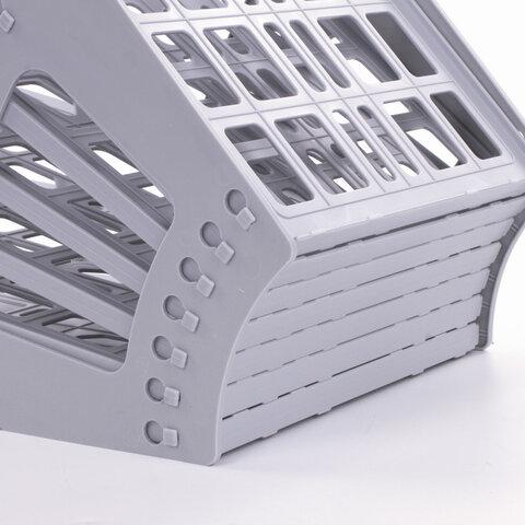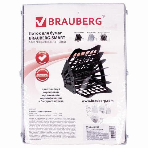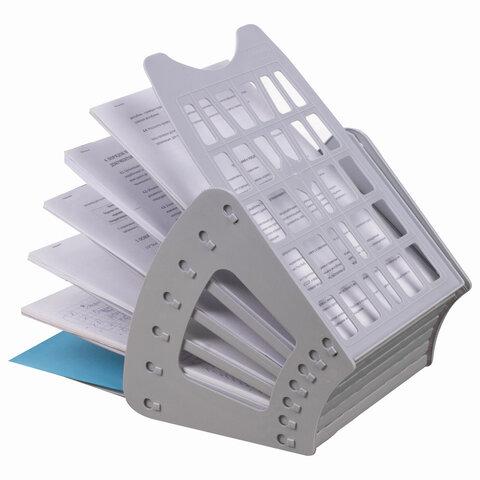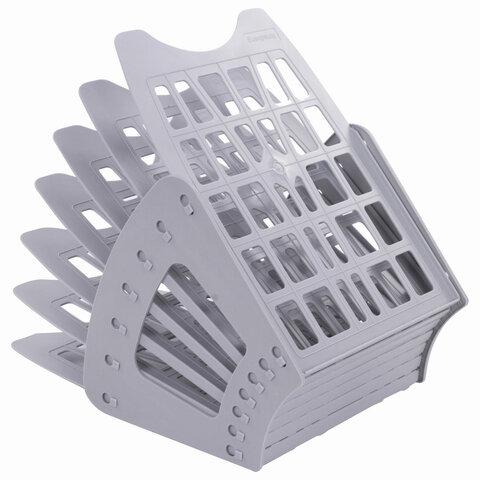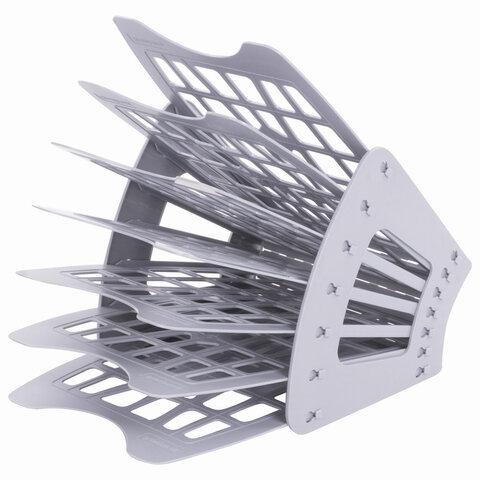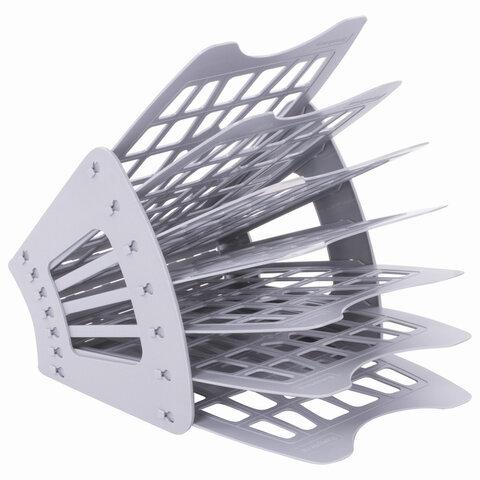 Лоток для бумаг веерный BRAUBERG-SMART, 7-ми секционный, сетчатый, серый, 231144