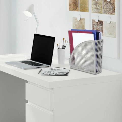 Лоток вертикальный для бумаг STAFF "Profit", 270х100х250 мм, сетчатый, полипропилен, серый, 237252