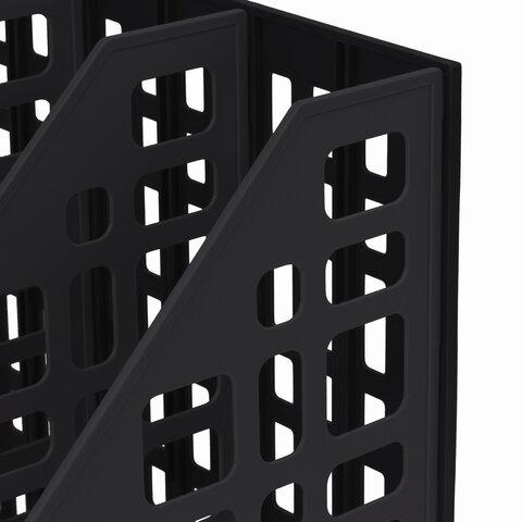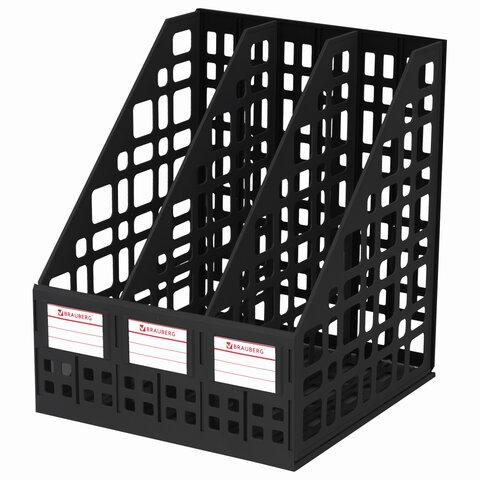 Лоток вертикальный для бумаг BRAUBERG "MAXI Plus", 240 мм, 3 отделения, сетчатый, сборный, черный, 237013
