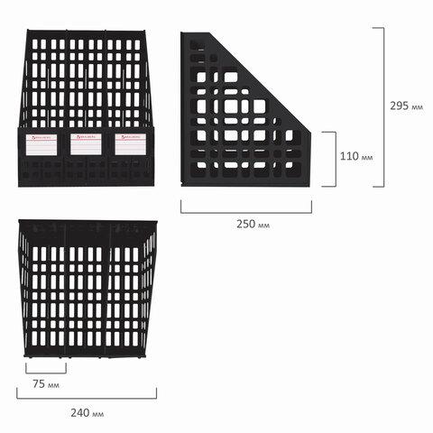 Вместительный вертикальный лоток BRAUBERG "MAXI-plus" для хранения каталогов и папок позволит поддержать порядок на рабочем месте и сэкономит пространство на столе и в шкафу.Выполнен в черном цвете с тремя отделениями. Предназначен для хранения каталогов и папок. Представляет собой прочную устойчивую сборную конструкцию с сетчатыми боковыми стенками. Размеры: высота - 295 мм, ширина - 240 мм, глубина - 250 мм.
