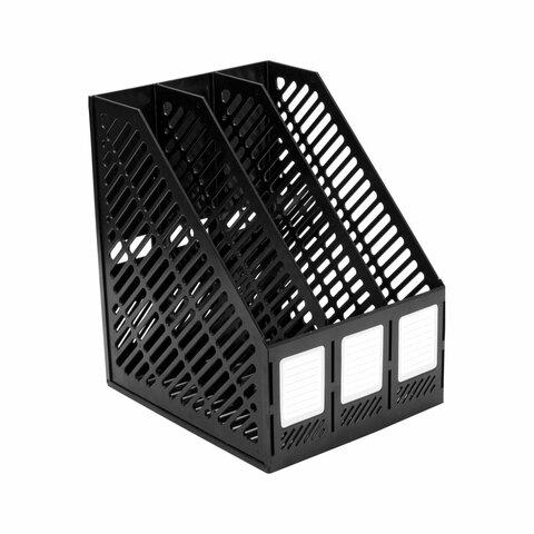 Лоток вертикальный для бумаг BRAUBERG "Office-Expert", 255 мм, 3 отделения, сборный, черный, 238017