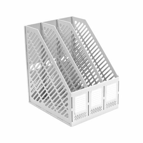 Лоток вертикальный для бумаг BRAUBERG "Office-Expert", 255 мм, 3 отделения, сборный, серый, 238018