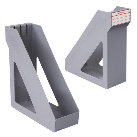 Лоток вертикальный для бумаг BRAUBERG "Basic", 265х100х285 мм, серый, 237010
