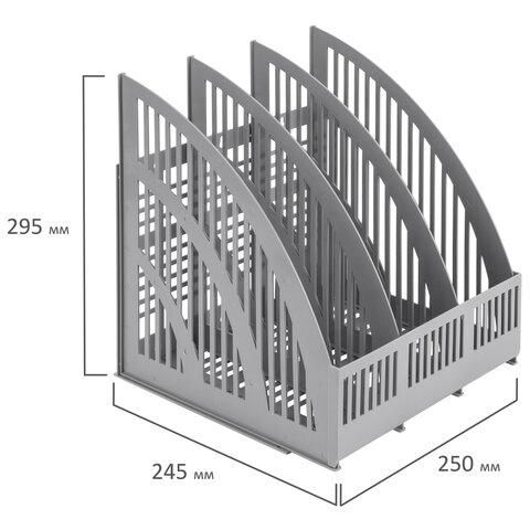 Вертикальный лоток для бумаг BRAUBERG "Energy" для хранения документов позволит поддержать порядок на рабочем месте и сэкономит пространство на столе и в шкафу.Выполнен в сером цвете с тремя отделениями. Представляет собой устойчивую разборную конструкцию с сетчатыми поверхностями. Поставляется в разобранном виде. Размеры: высота - 285 мм, ширина - 245 мм, глубина - 250 мм.