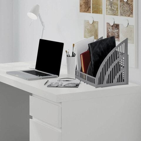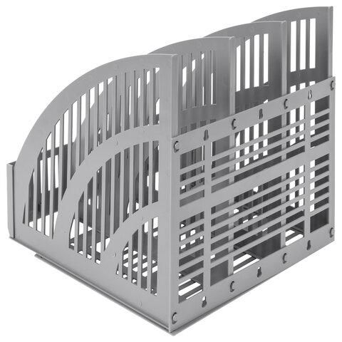 Лоток вертикальный для бумаг BRAUBERG "Energy", 250 мм, 3 отделения, сетчатый, сборный, серый, 237018