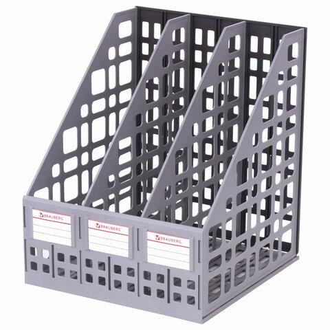 Лоток вертикальный для бумаг BRAUBERG "MAXI Plus", 240 мм, 3 отделения, сетчатый, сборный, серый, 237014