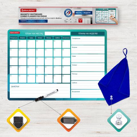Планинг магнитный "Месяц и Неделя" на холодильник 42х30 см, с маркером и салфеткой, BRAUBERG, 237854