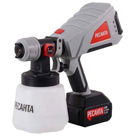Краскопульт аккумуляторный, 20В, 1.0л, 800 мл/мин, сопло 1-2.5 мм, 1х4А*ч, РЕСАНТА АКП-20Li, 75/17/3