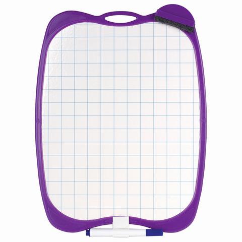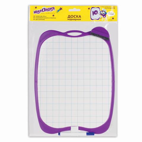 Доска двусторонняя маркерная A4 (190х270 мм), БЕЛАЯ/КЛЕТКА, с маркером и стирателем, ЮНЛАНДИЯ, 236898