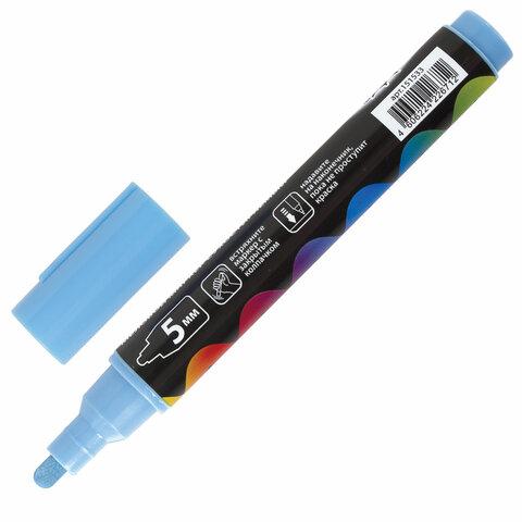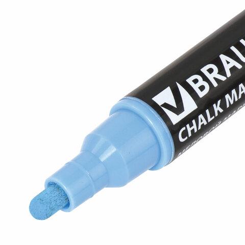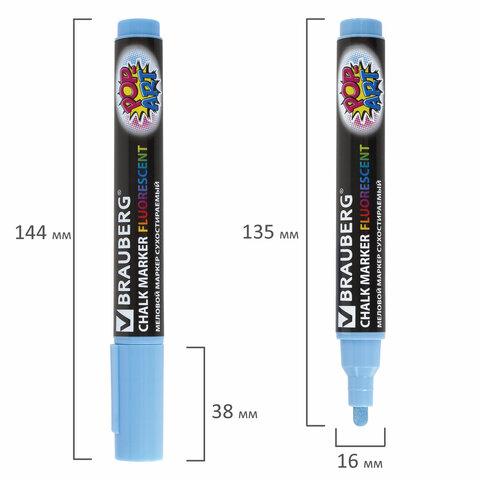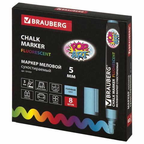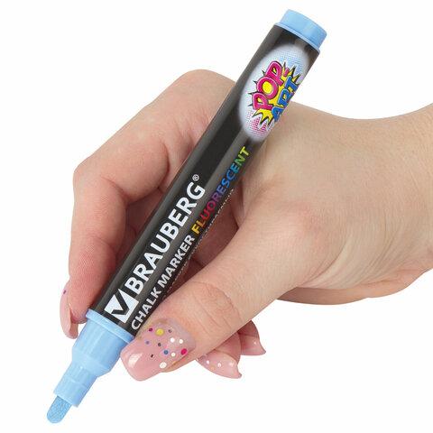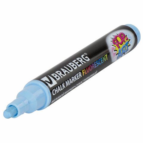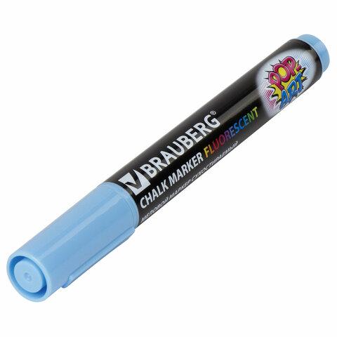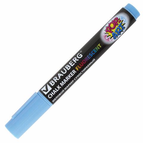 Маркер меловой BRAUBERG "POP-ART", сухостираемый, для гладких поверхностей, 5мм, ГОЛУБОЙ, 151533