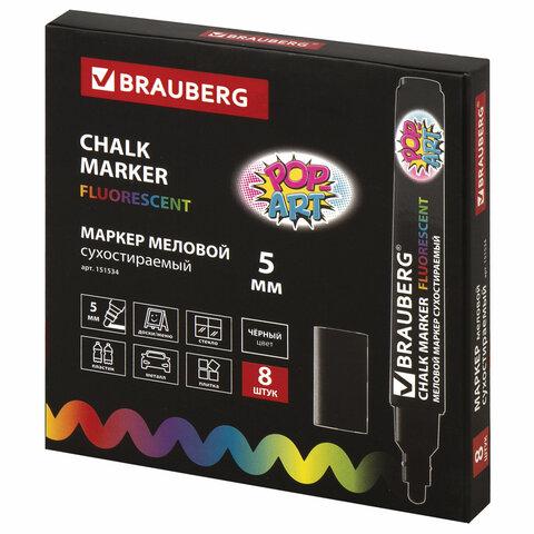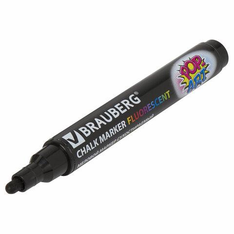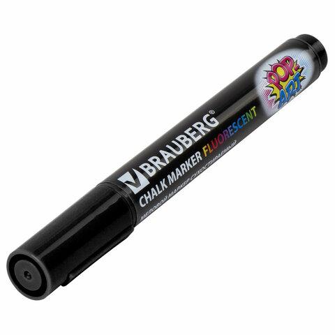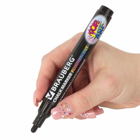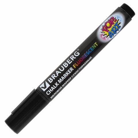 Маркер меловой BRAUBERG "POP-ART", сухостираемый, для гладких поверхностей, 5мм, ЧЕРНЫЙ, 151534