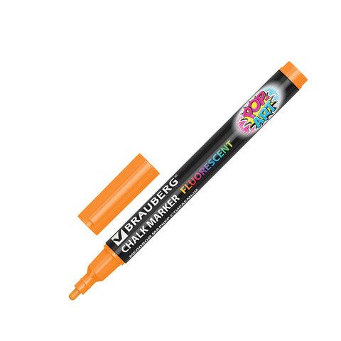 Маркер меловой BRAUBERG "POP-ART", сухостираемый, для гладких поверхностей, 3,5 мм, ОРАНЖЕВЫЙ, 151523