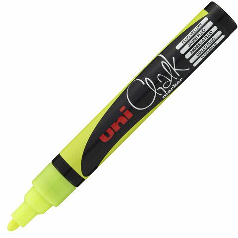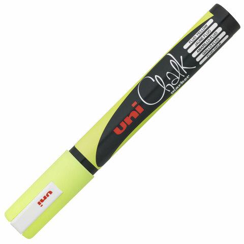 Маркер меловой UNI Chalk, 1,8-2,5мм, ЖЕЛТЫЙ, влагостир., для гладких поверхностей, PWE-5MF.YELLOW, PWE-5M F.YELLOW