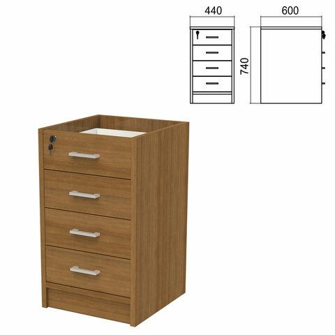 Тумба (каркас БЕЗ КРЫШКИ) приставная "Арго", 440х450х740 мм, 4 ящика, замок, орех