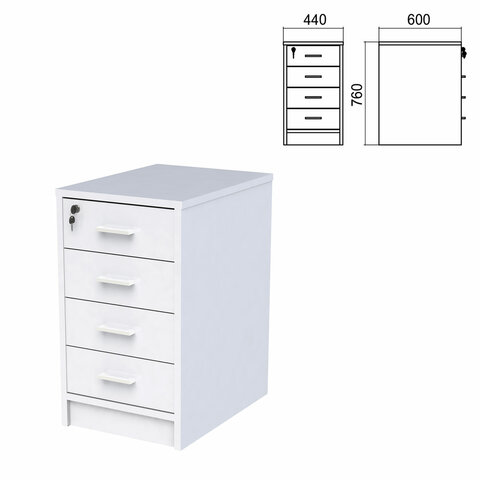 Тумба приставная "Арго", 440х600х760 мм, 4 ящика, замок, серый (КОМПЛЕКТ)