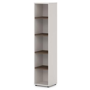 Офисный стеллаж высокий узкий, 5 полок. Декоры: верх, низ, бока, задняя стенка - Бежевый песок; горизонтали, полки - Таксония.
