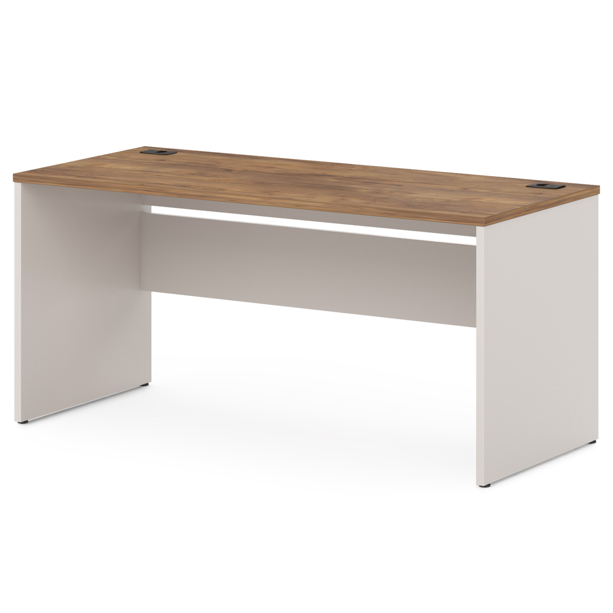 Стол офисный прямой с 2 заглушками кабель-канала на опорах ЛДСП комбинированный. Артикул: Т-15. Декоры: столешница - Таксония; бока, соединитель - Бежевый песок. Размер: 1600х700х750. ЛДСП: 25 мм и 18 мм. Кромка: ABS 2 мм и 0,4 мм.