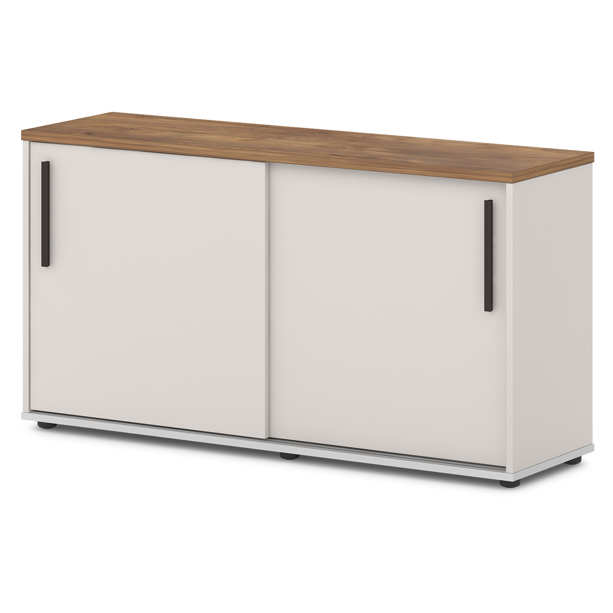 Офисная тумба-купе с большой секцией для хранения. Декоры: верх - Таксония; остальные детали - Бежевый песок.