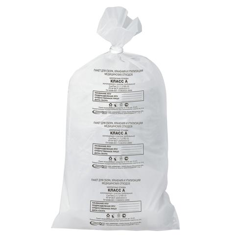 Мешки для мусора медицинские, в пачке 20 шт., класс А (белые), 100 л, 60х100 см, 15 мкм, АКВИКОМП