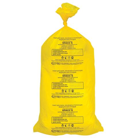 Мешки для мусора медицинские, в пачке 20 шт., класс Б (желтые), 100 л, 60х100 см, 15 мкм, АКВИКОМП