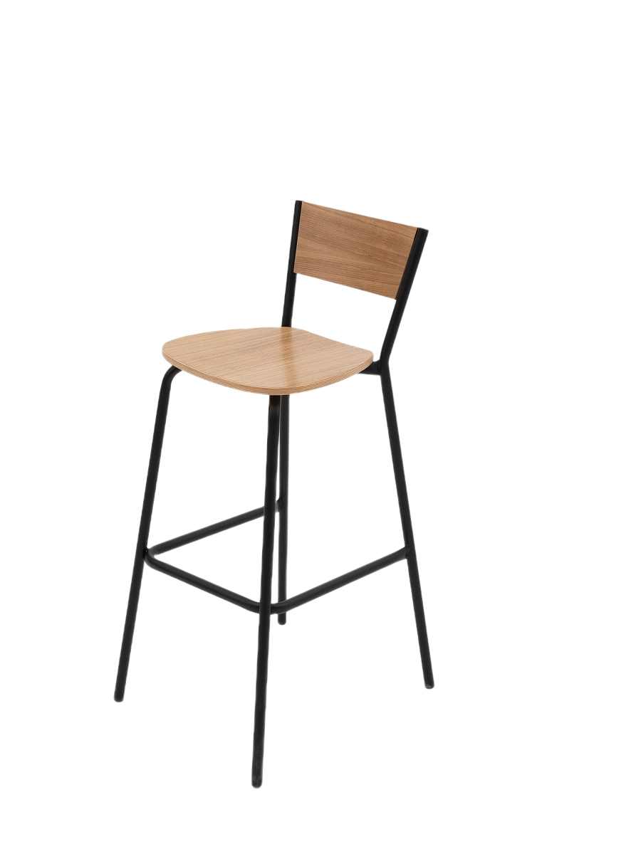 Сиденье и спинка стула Марсель барный выполнены из гнутой фанеры облицованной шпоном дуба. Каркас выполнен из стальной трубы диаметром 18мм. Каркас окрашивается порошковой краской. Ножки оснащены пластиковыми подпятниками.