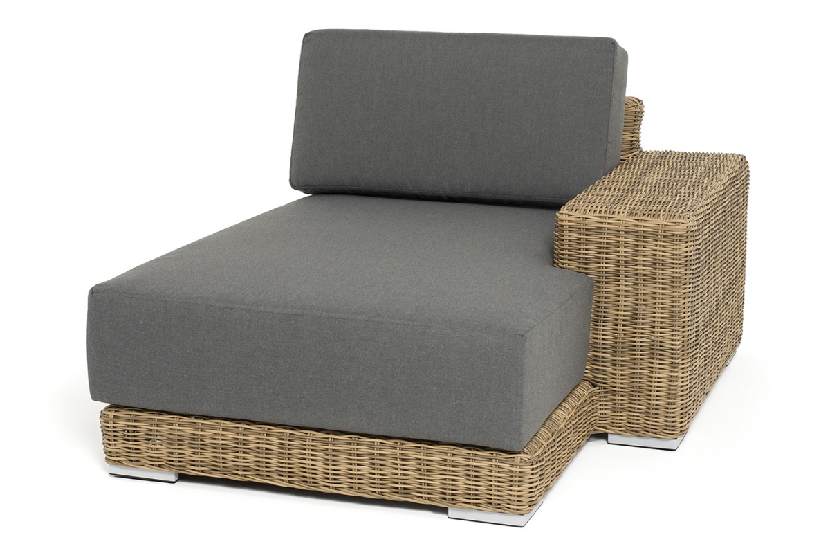 Кушетку можно использовать не только как самостоятельный элемент, но и быть частью лаунж-зоны, в которую данная модель превосходно интегрируется.