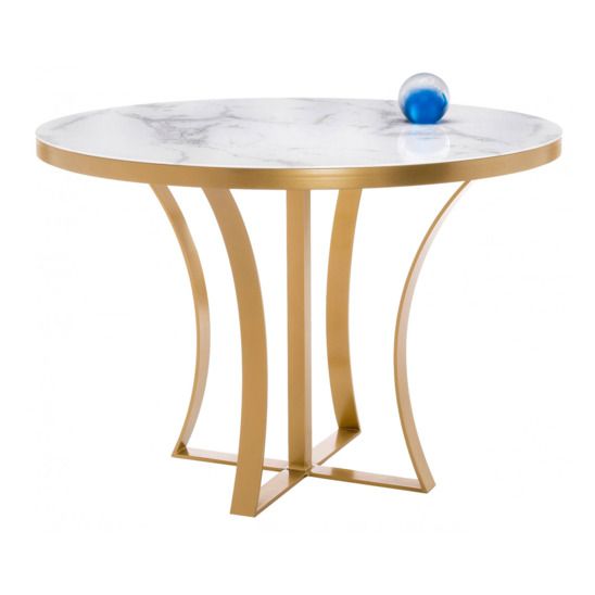 Стеклянный стол Нейтон белый мрамор / золото