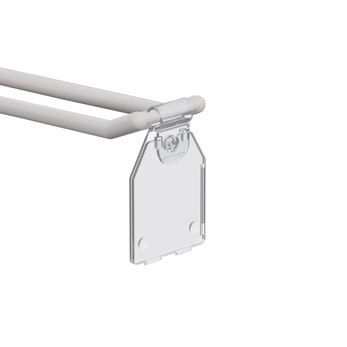 Ценникодержатель на крючок PP-TAG применяется для размещения ценников на двойных металлических и пластиковых крючках без Т-держателя. Он устанавливается на переднюю часть крючка и фиксируется защелкиванием, обеспечивая надежное крепление.