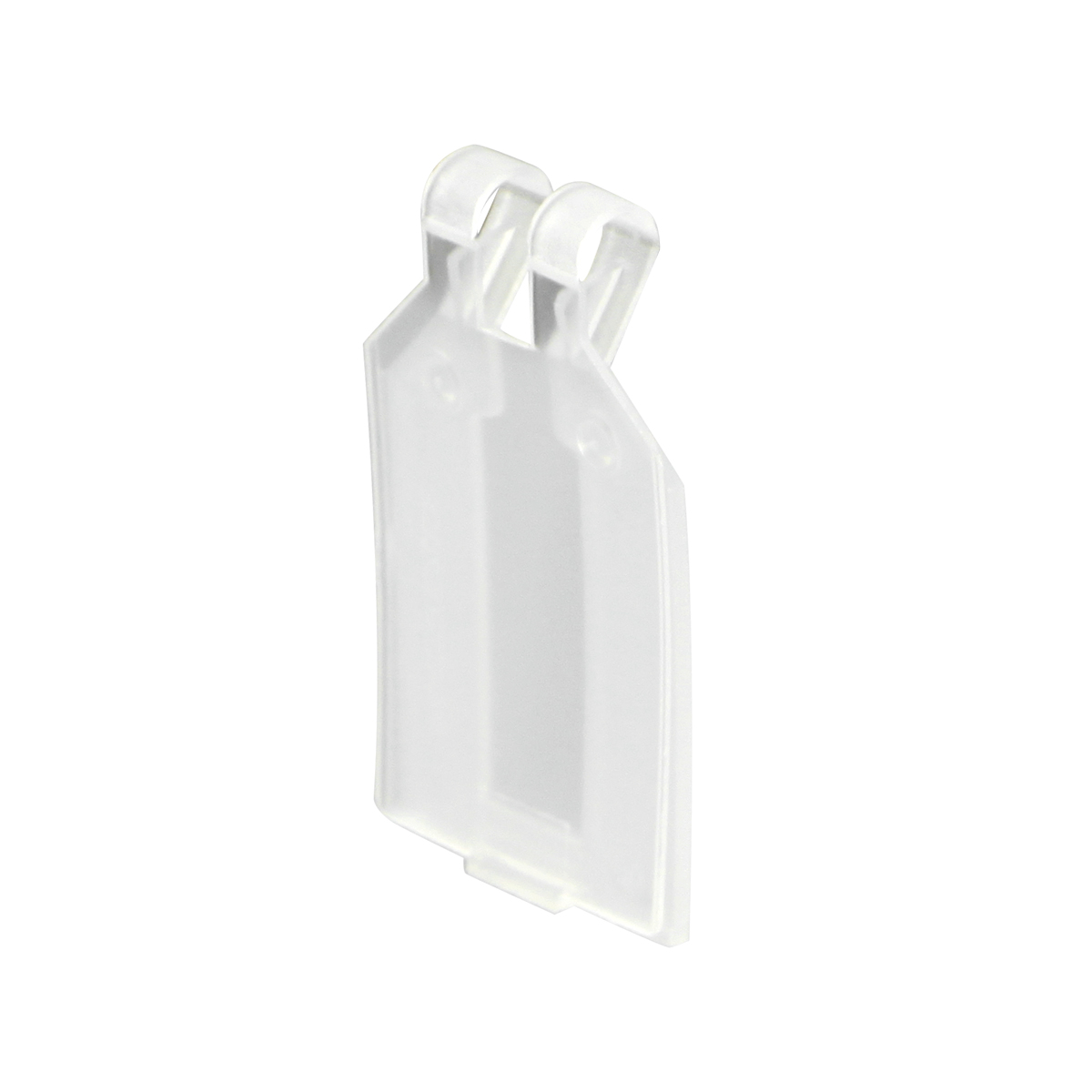 Откидной ценникодержатель на крючок с двумя крепежными петлями (тип «майка»). Отличие от PP-TAG в способе крепления: PP-TAG-SLIM защелкивается в нижней части изделия.