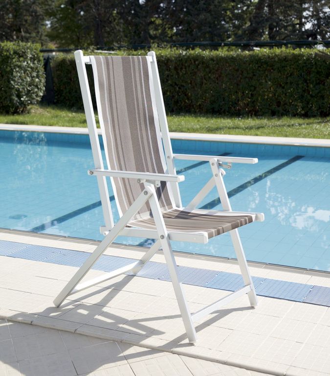 Кресло-шезлонг текстиленовое складное Marinella серебристый