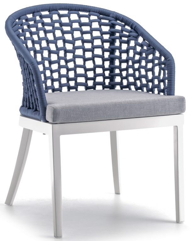 Кресло плетеное с подушкой Kos белый, синий, светло-серый