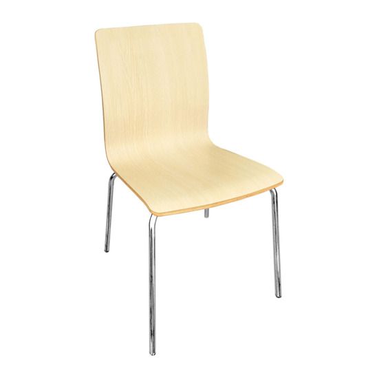 Стул металлический. Каркас - нержавеющая сталь полированная до зеркального вида. Спинка и сиденье - жесткое. Сиденье - ламинированная фанера. Цвет: темный орех, бук.