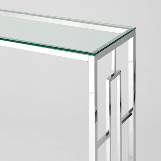 Консоль БРУКЛИН, благодаря оригинальной форме, станет ярким дизайнерским акцентом в интерьере. Каркас консоли изготовлен из нержавеющей стали, столешница - закаленное стекло.