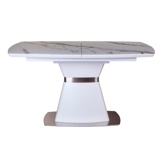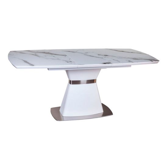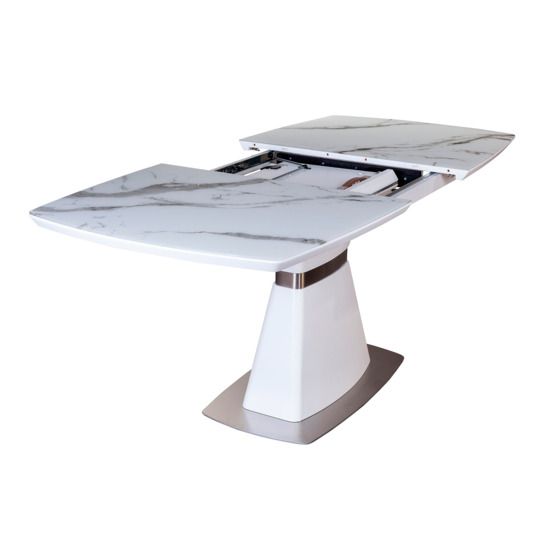 Арт. Стол раскладной Madison 140, закаленное стекло имитация камня белый