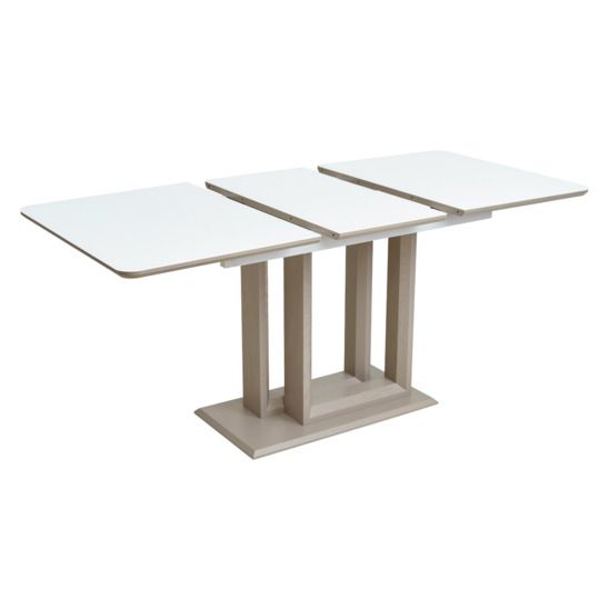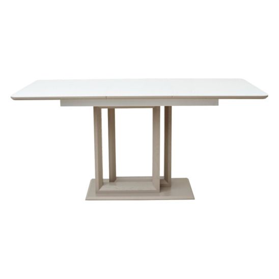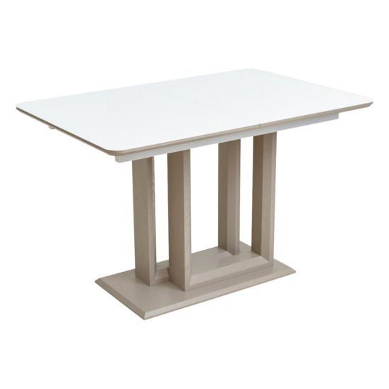 Стол Тетрис 120 белый, стекло/ каркас латте