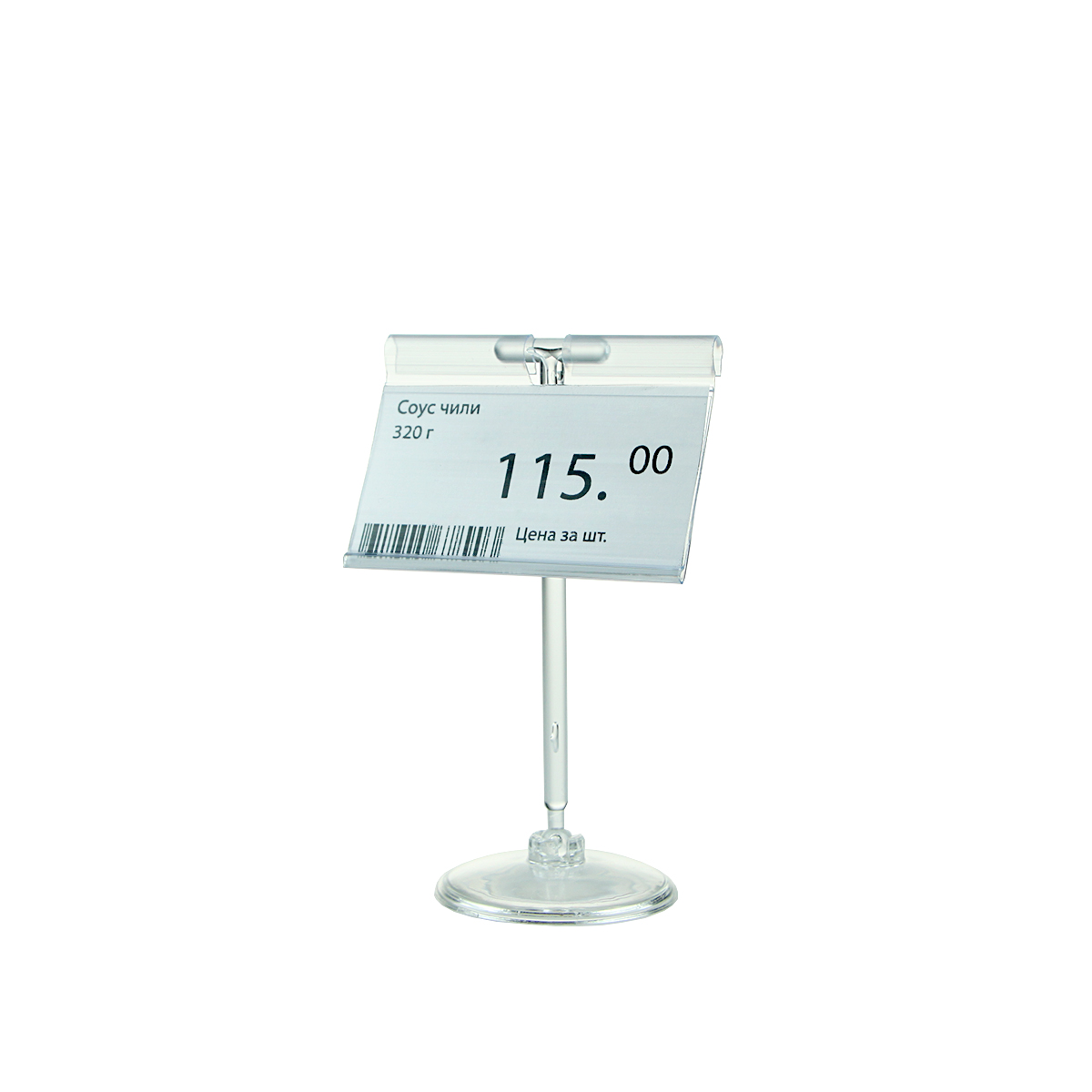 Держатель ценника на ножке и круглой пластиковой подставке. Комплектуется ценникодержателем VH для размещения бумажного ценника размером 39*70 мм.