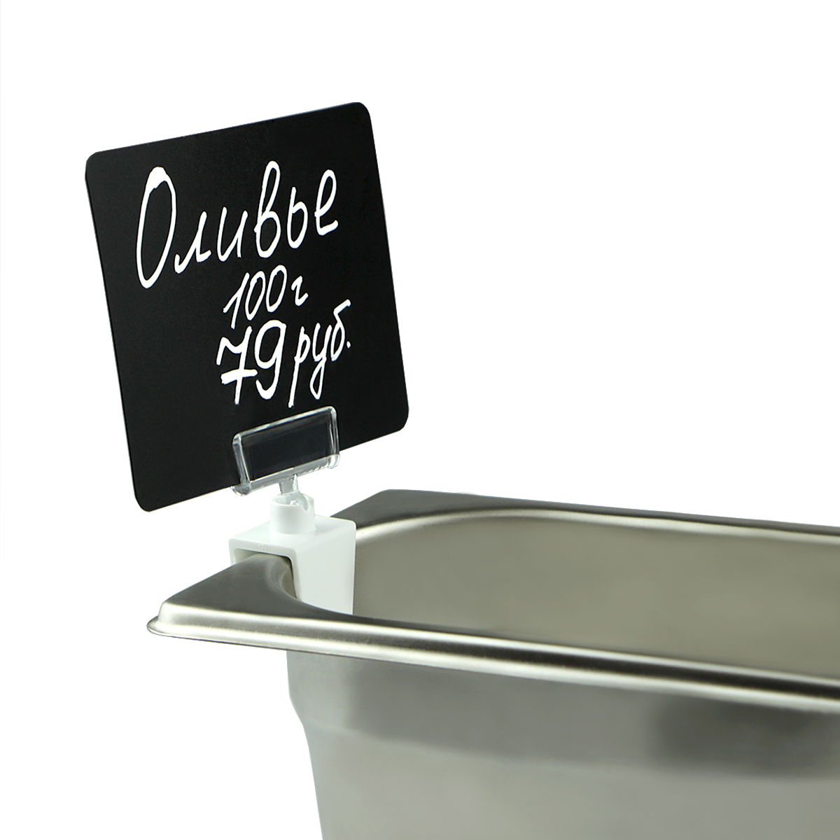 Ценникодержатель шарнирный CL предназначен для крепления на край посуды, гастроемкостей, тары, полок толщиной до 10 мм. Имеет выемку для крепления за посуду или оборудование с бортом или выступом.