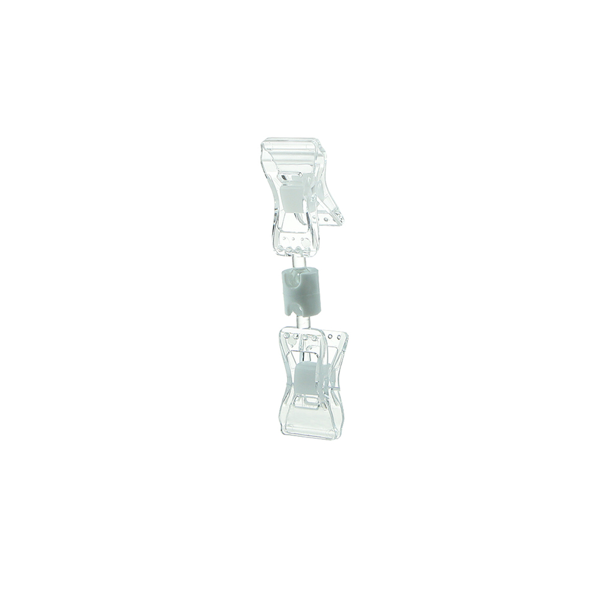 Универсальный ценникодержатель FXS-DBL оснащен малой прищепкой не только в качестве крепежного элемента, но и в качестве держателя вставки с информацией. Прищепки позволяют закрепить ценникодержатель и вставку в него толщиной до 10 мм.
