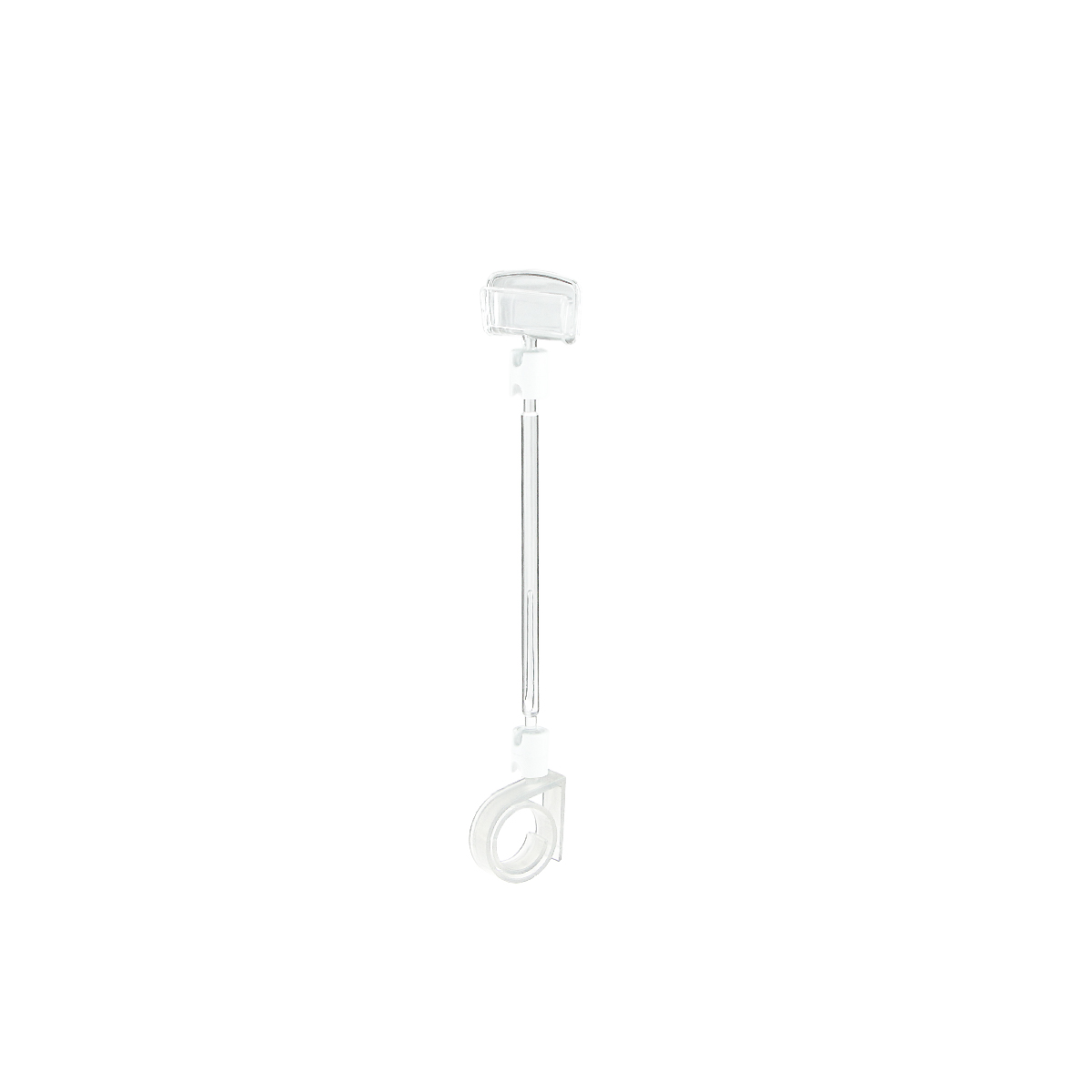 Универсальный держатель ценника-улитка, позволяющий крепить ценникодержатель на посуду, продукты, край полки разной толщины.