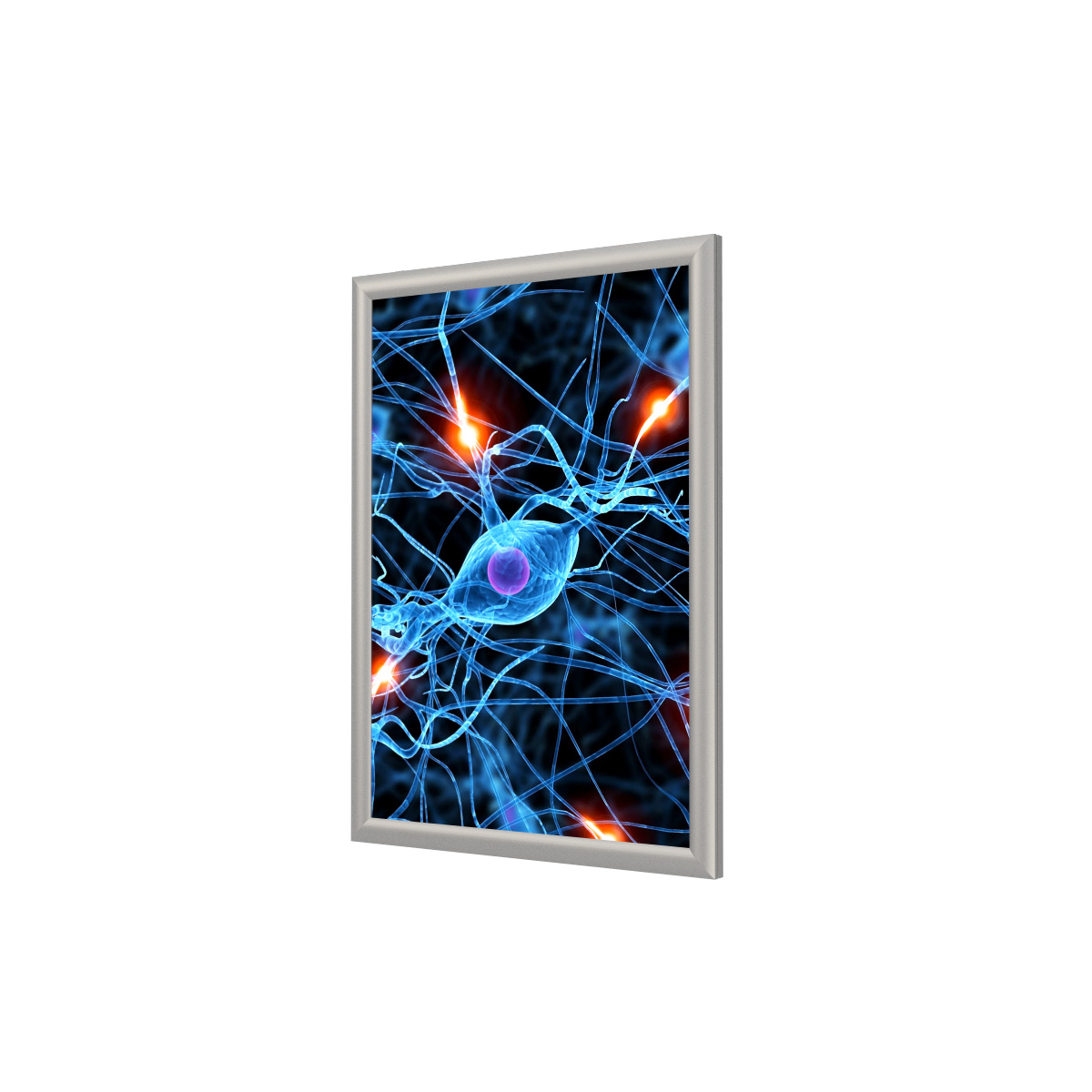 Для смены постера отщелкните алюминиевый профиль, снимите защитный вкладыш, поместите новый постер на место старого, защелкните алюминиевый профиль.