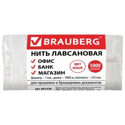 Нить лавсановая для прошивки документов, БЕЛАЯ, диаметр 1 мм, длина 1000 м, ЛШ 210, BRAUBERG, 601578