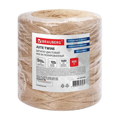Шпагат джутовый полированный длина 900 м диаметр 2 мм, 3-х ниточный, BRAUBERG, 607946