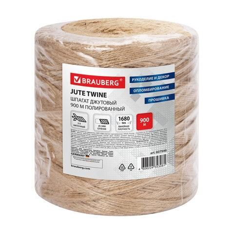 Шпагат джутовый полированный длина 900 м диаметр 2 мм, 3-х ниточный, BRAUBERG, 607947