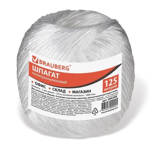 Шпагат полипропиленовый, длина 125 м, диаметр 2 мм, линейная плотность 1600 текс, BRAUBERG, 600398