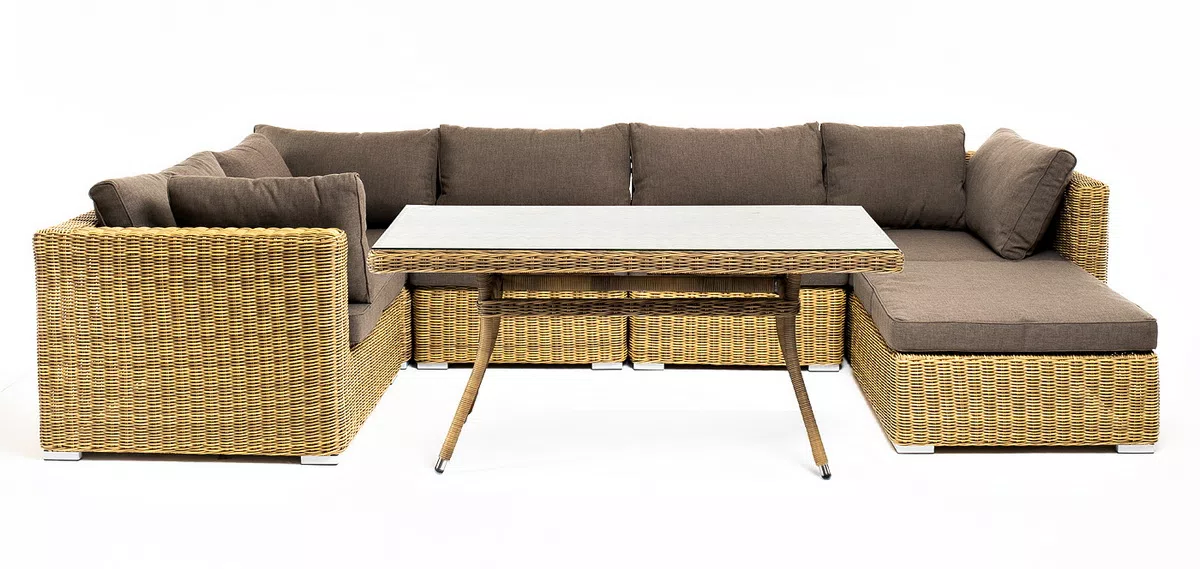 "Лунго" обеденная группа угловая из искусственного ротанга, цвет соломенныйцвет соломенный