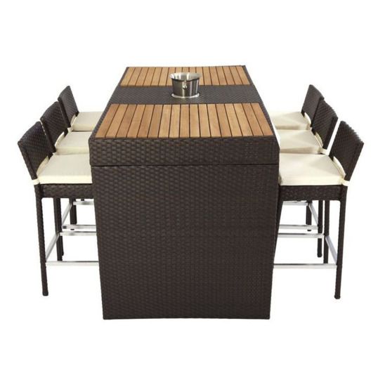 Барный комплект из искусственного ротанга «Модерн» – барный стол и 6 барных стульев со спинкой – идеально впишется в любой современный интерьер гостиной, кухни или столовой. Рассчитан на 6 персон. Не требует особого ухода, не боится больших нагрузок и воды, не выгорает на солнце