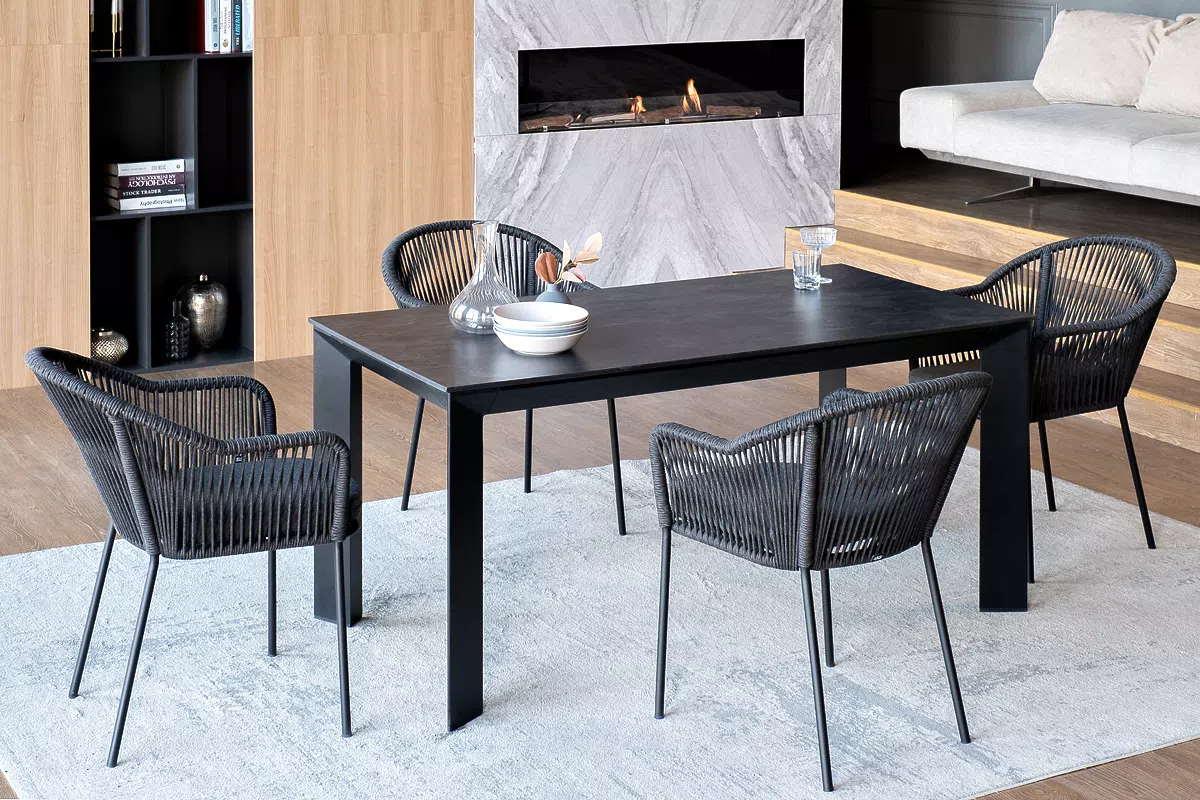 "Венето" обеденная группа на 4 персоны со стульями "Лион", каркас темно-серый, роуп темно-серыйцвет Темно-серый