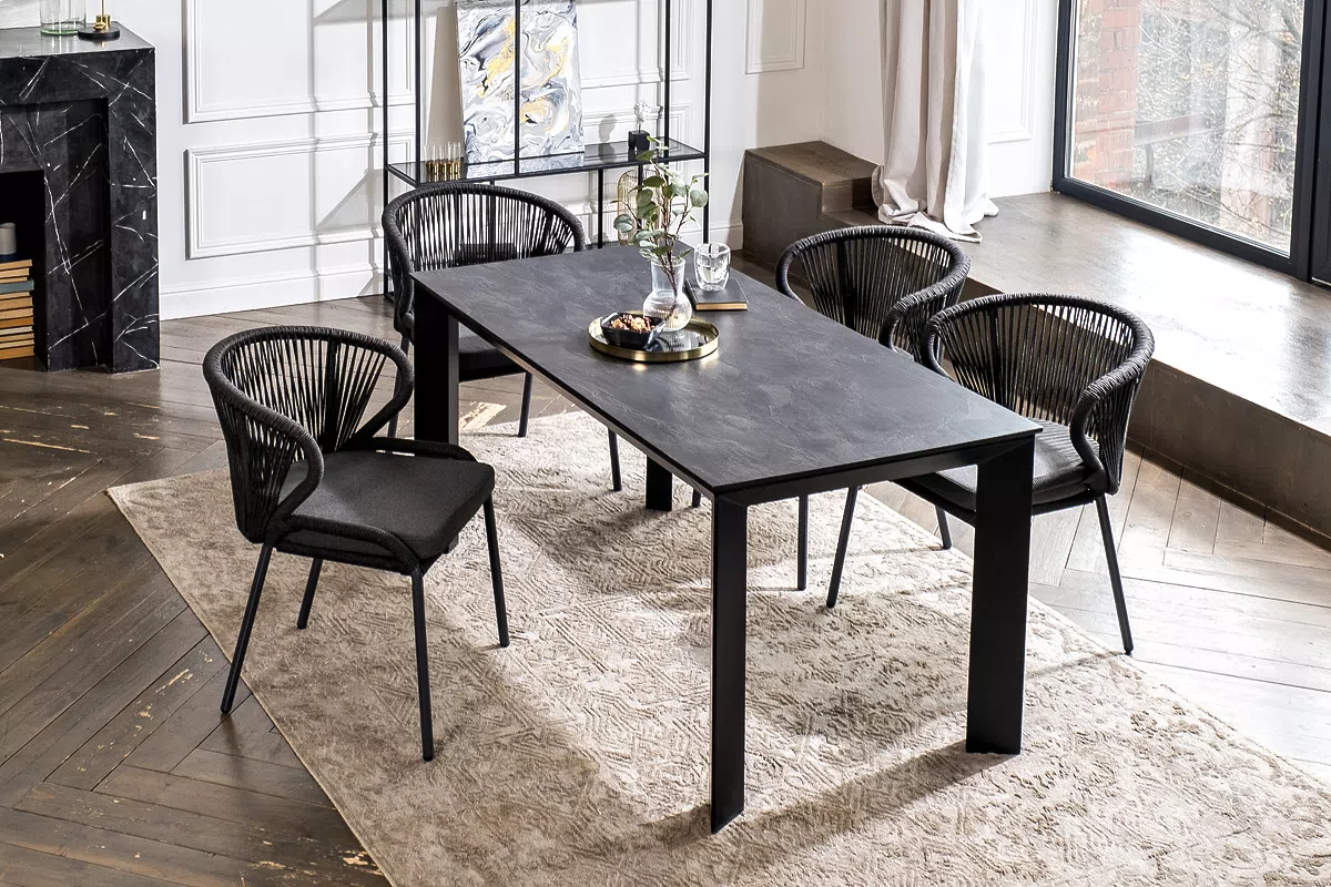 "Венето" обеденная группа на 4 персоны со стульями "Милан", каркас темно-серый, роуп темно-серыйцвет Темно-серый